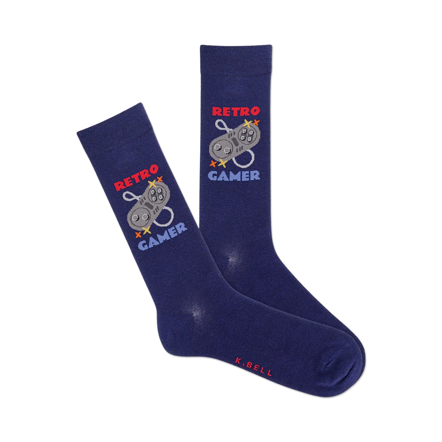 Retro gamers, prepare to level up your sock game! These rad crew socks feature the words 'Retro Gamer' in bold font, accompanied by an iconic 8-bit style video game controller. Blast back to the golden age of gaming with these colorful and comfortable socks. Perfect for conquering high scores, marathoning your favorite retro titles, or just showing off your love for all things vintage.